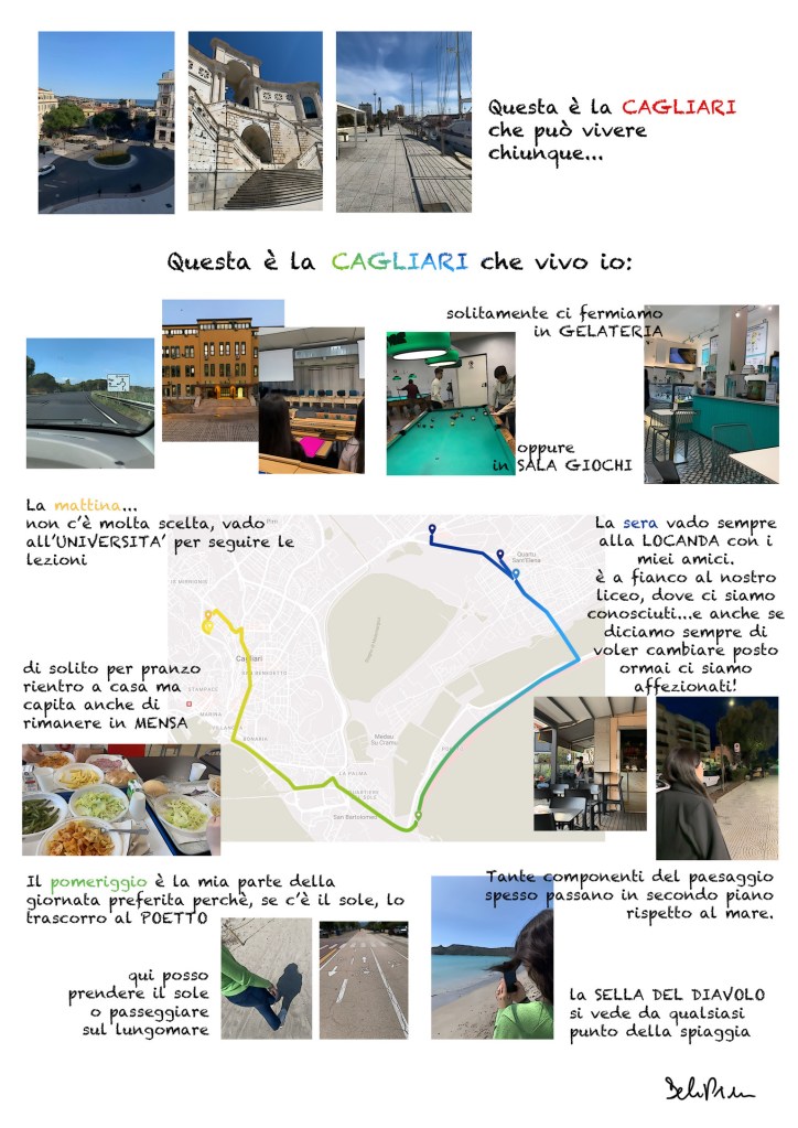Making sense of new places means moving around, exploring and experiencing movement. Chiara moves us into the city, with her friends are guides, making new meanings through shared connections to new places.