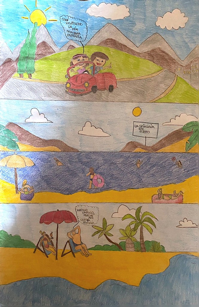 Francesca’s experience of beach life is similar: a voyage somewhere to feel and live in the moment. The Poetto beach: poetry inscribed in the landscape, named as such.