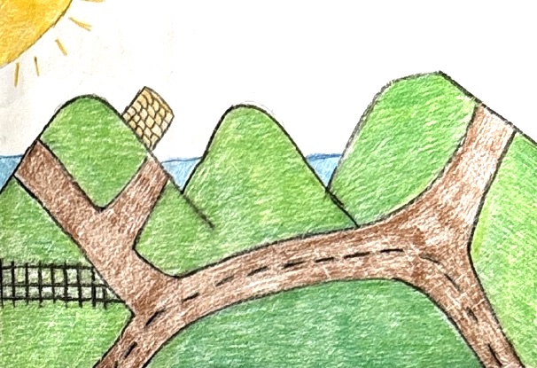 Reaching further back in time, one (anonymous) student focussed on one of the extraordinary medival towers that haunt the island, showing how this was built in 1587 to defend against pirates, yet now formed part of the landscape.