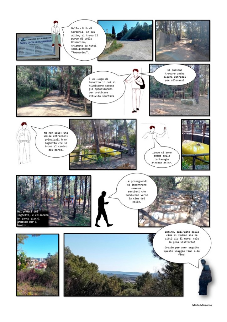 Marta also lived in Carbonia, and to focussed on one part of that broader map, telling the tale of a peaceful place: a small park filled with the odour of rosemary, traversed by cool water in the dry landscape.